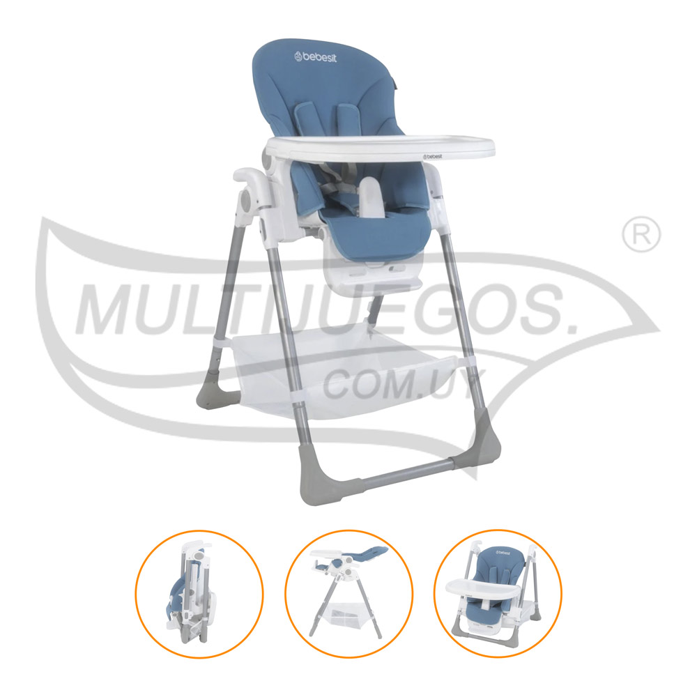 Silla para comer con toda la comodidad / Cantidad de piezas: 1 / Medidas: / Material: Plástico, metal y tela / Embalaje: Caja / Dimensión del embalaje: / Características: Contiene 3 posiciones de reclinado, 5 posiciones de altura, bandeja desmontable, 4 ruedas giratorias 360º con frenos independientes, cinturón de 5 puntas y tapizado de fácil lavado.