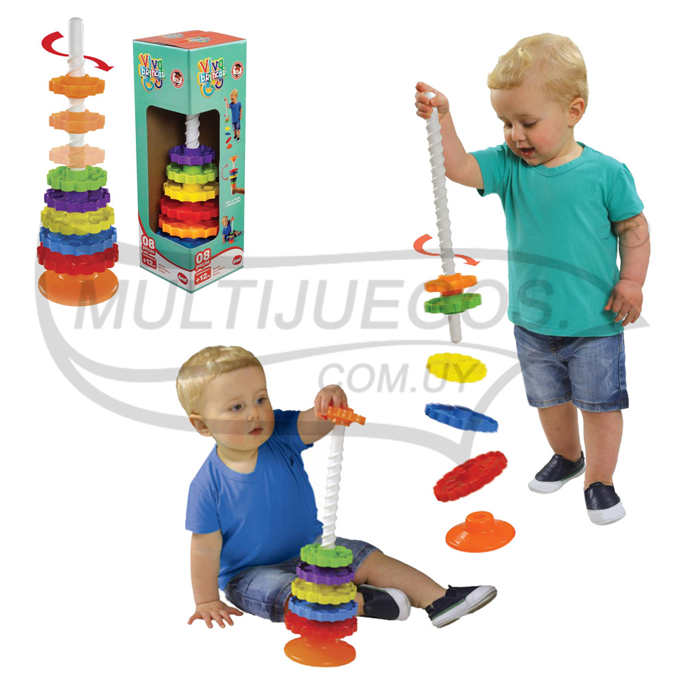 El juego cuenta con un poste donde el hace girar los discos / Cantidad de piezas: 7 / Medidas: 40cm / Material: Plástico / Embalaje: Caja / Dimensión del embalaje: / Características: Discos giratorios diferentes tamaños