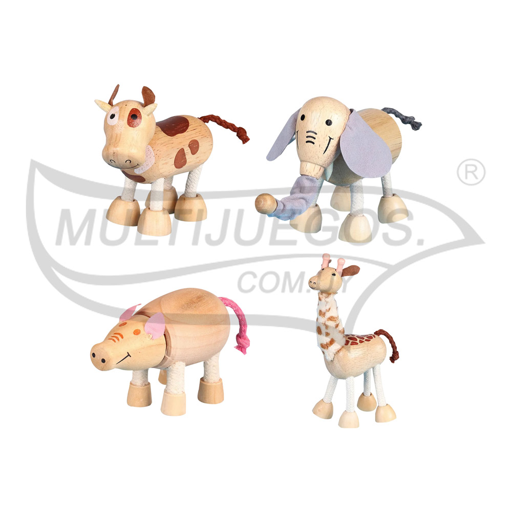 Precio por unidad / Cantidad de piezas: 1 / Material: Madera y tela / Medidas: 9 x 10 x 4 cm / Modelos: Jirafa, vaca, elefante y cerdito / En este código los modelos son aleatórias (NO A ELECCIÓN)