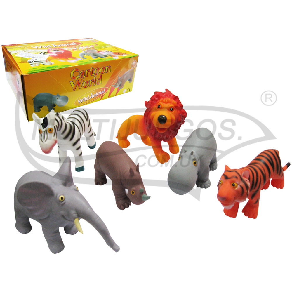 Cantidad de piezas: 6 / Medidas: 18 a 23 cm aprox. / Material: Goma / Embalaje: Caja / Dimensión del embalaje: / Características: La medida es aproximada ya que cambian según el animales.