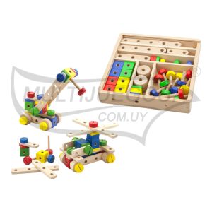 Fomentar la creatividad y el trabajo libre individual y colaborativo / Cantidad de piezas: 68 / Medidas de la pieza más grande: 14 x 6 x 4 cm / Material: Plástico / Embalaje: Caja / Dimensión del embalaje: 32.5 x 24.5 X 13 cm / Características: Diferentes tamaños de bloques