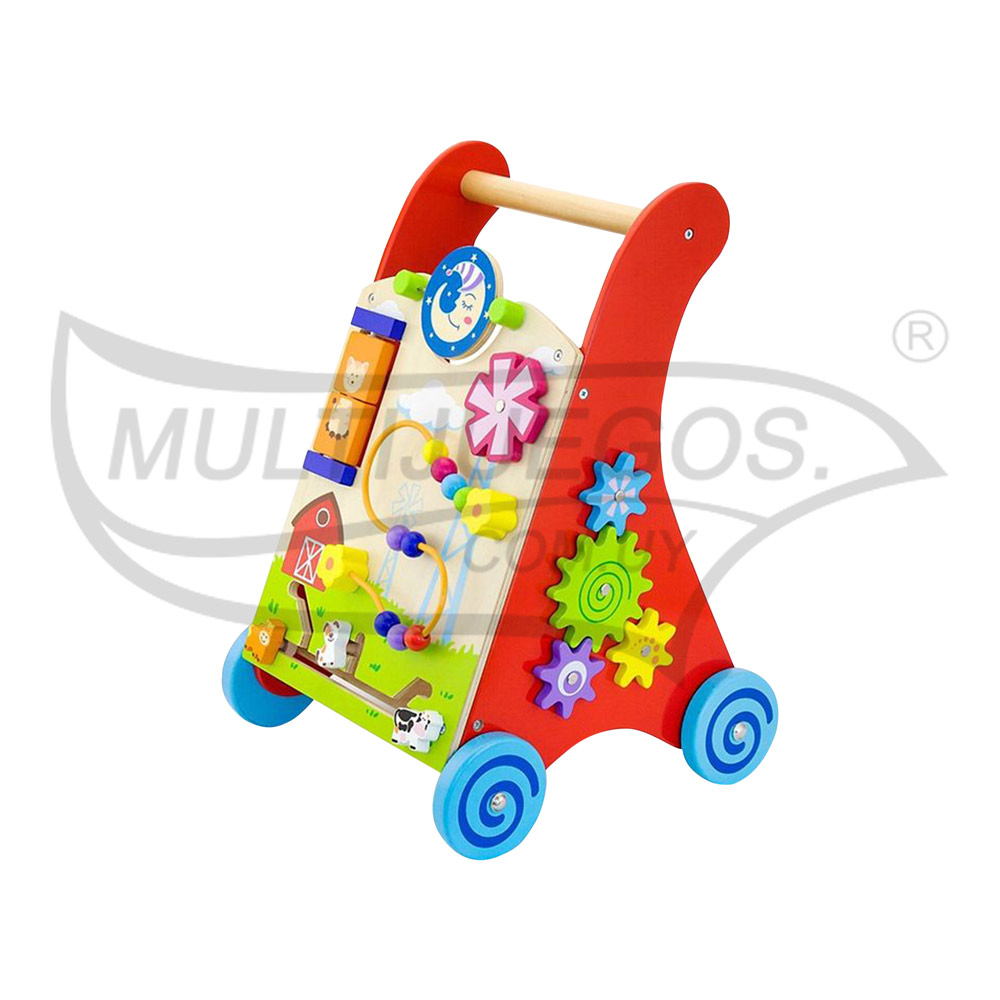 Este caminador se combina con varios actividades, incluyendo laberinto y pista de animales de granja, cuentas de alambre, molino de viento giratorio, placa giratoria solar, engranajes, bloques de seguimiento y localización en los laterales / Medidas: 34 x 45,5 x 32 cm