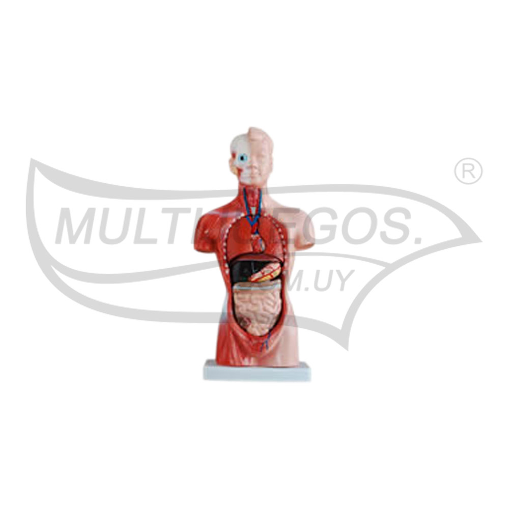 Cantidad de piezas: 15 / Medidas: 28 x 14 x 6 cm / Material: plástico y goma / Embalaje: Caja / Dimensión del embalaje: / Características: Incluye cerebro (2 partes), calota cortada, tráquea y esófago y aorta, corazón, pulmón (4 partes), estómago, diafragma, hígado, páncreas y bazo, intestino.