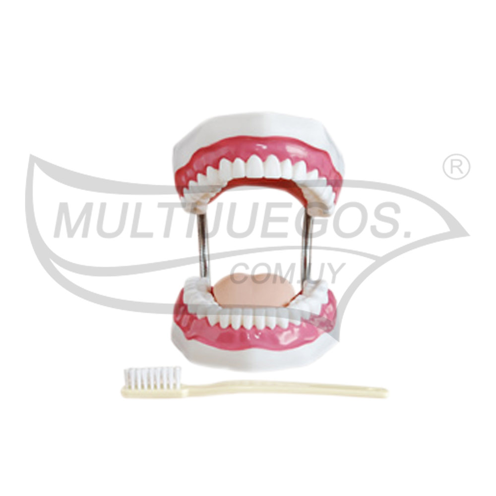 Cantidad de piezas: 2 / Medidas: 13 x 16 x 10 cm / Material: Plástico / Embalaje: Caja / Dimensión del embalaje: 17 x 19 x 12 cm / Características: Modelo dental humano de 32 dientes con cepillo dental gigante