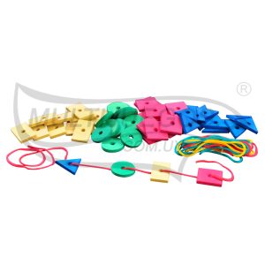 Ofrece un gran desafío para la motricidad fina por cuanto el juego lo invita a iniciar y terminar cada enhebrado en la misma figura. Al poder usarse individual o grupalmente favorece no solamente el potencial personal, sino también el intercambio lingüístico-social. Infaltable en el trabajo áulico.