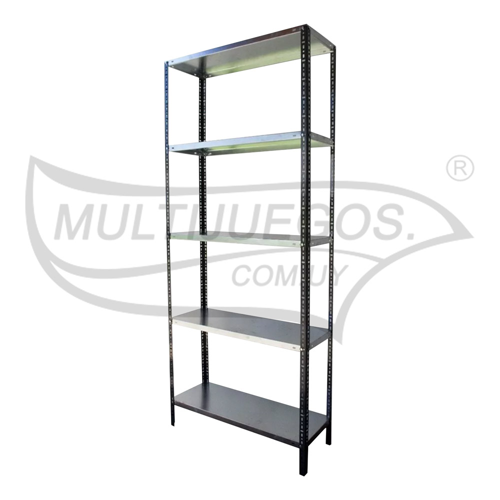 Material: Metal galvanizado / Medidas: (Alto, Ancho, Profundidad) 200 x 84 x 30 Cm / Cantidad de estantes 5 / Soportan 30 kg por estante, son estantes reforzados con nervio / Detalle: fácil limpieza, ideal para lugares húmedos.