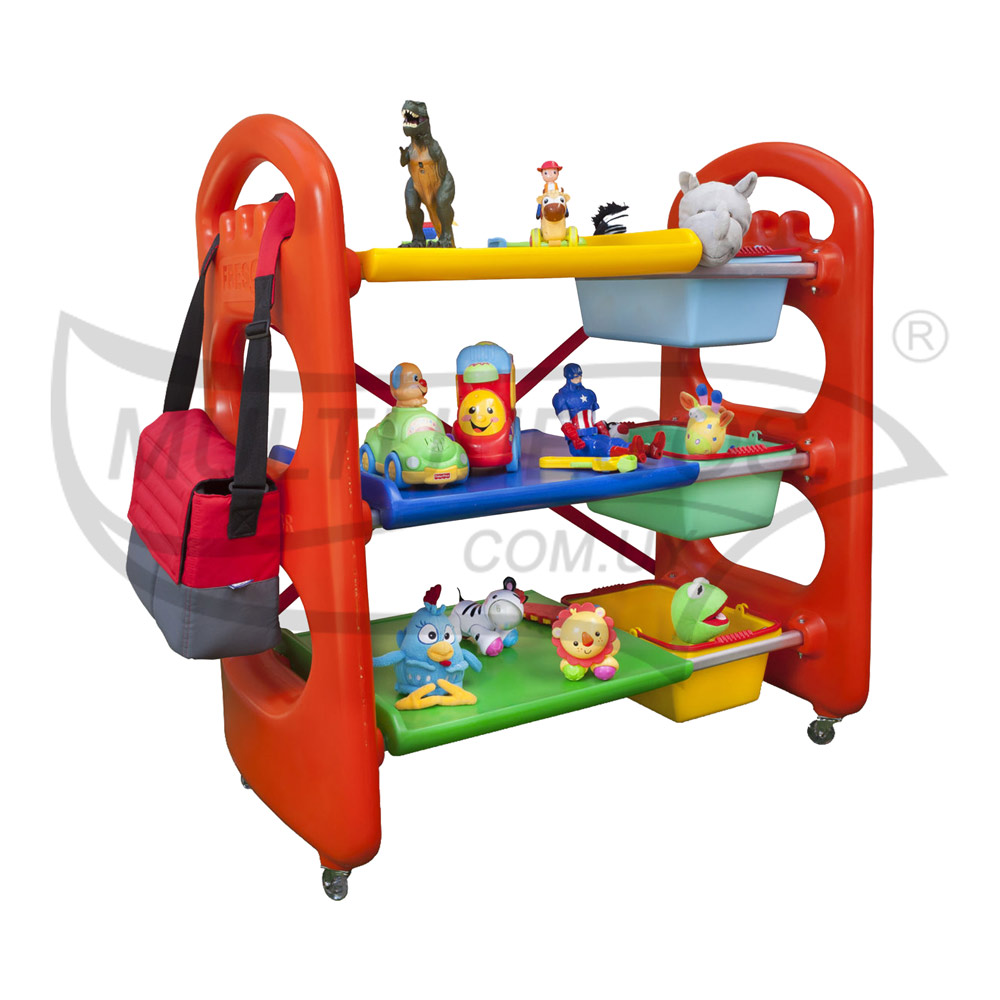 Cantidad de piezas:1 / Medidas:1,10 × 0,58 × 1,10 mt. / Material: polietileno rotomoldeado / Características: No incluye accesorios / 3 Canastos y tres estantes con ruedas.