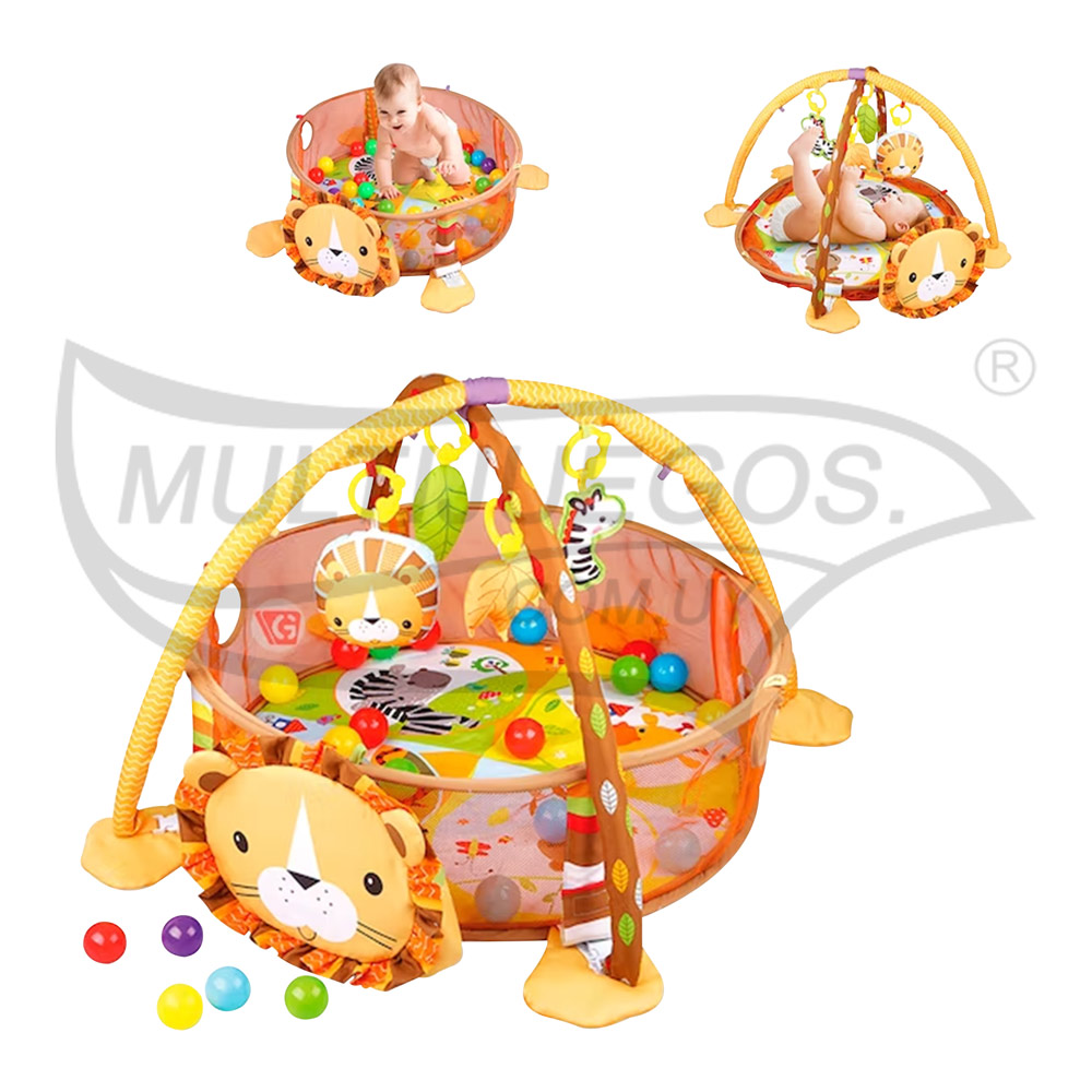 Cantidad de piezas: 45 / Medidas: 90 x 67 x 20 cm / Material: Tela y plástico / Embalaje: Caja / Dimensión del embalaje: 61 x 50 x 10 cm / Características: 40 pelotas, 4 juegos colgantes incluyendo un cangrejo con espejo, una estrella de mar, un pez payaso con mordedor, y un pulpito. 3 distintas formas de uso.