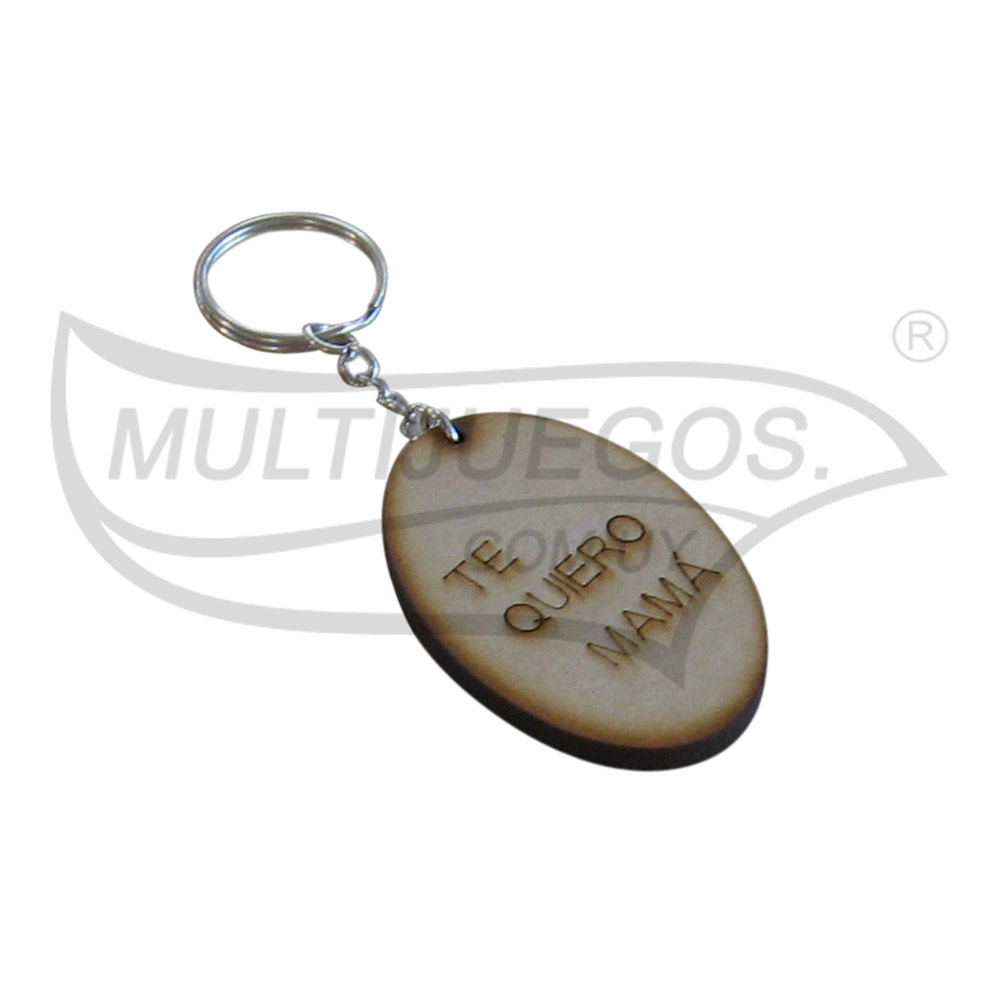 Con grabado / Cantidad de piezas: 1 / Material: madera (MDF) en natural y cadena con aro / Medida de la pieza: 4 x 6 x 0,5 cm / Dimensión de la caja / Embalaje: a granel en bolsa / Características: