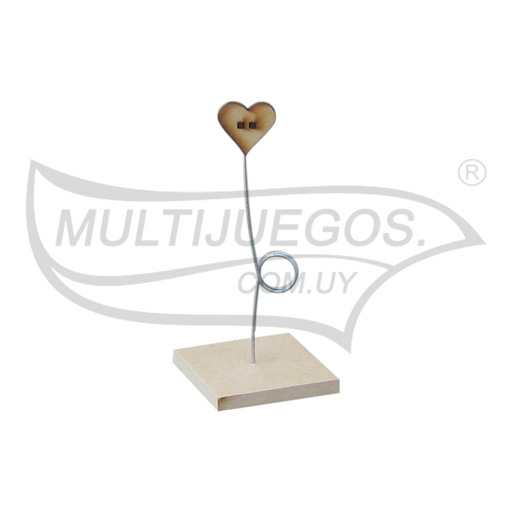 Base cuadrada con figura de corazón arriba / Cantidad de piezas: 1 / Material: madera (MDF) en natural y alambre / Medida de la pieza: 7 x 7 x 16 cm / Dimensión de la caja / Embalaje: a granel en bolsa / Características: