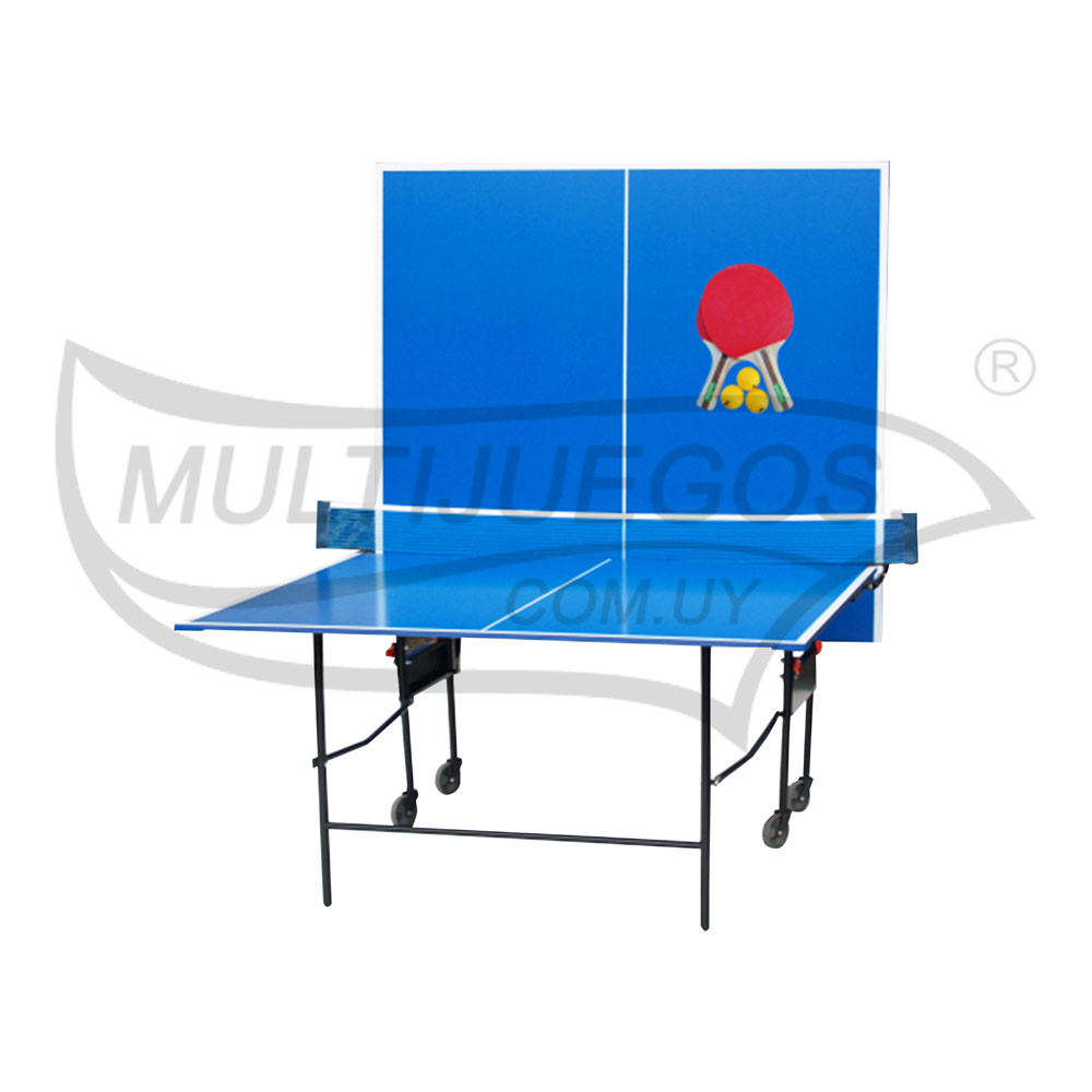 Mesa de Ping pong Plegable con ruedas (uso en interiores)rnEspesor de mesa 1.5cm, patas 2 x 2 cmrnColor: Azul / Medidas: Alt: 0,76 / Larg: 2,74 / Prof: 1,53 metros