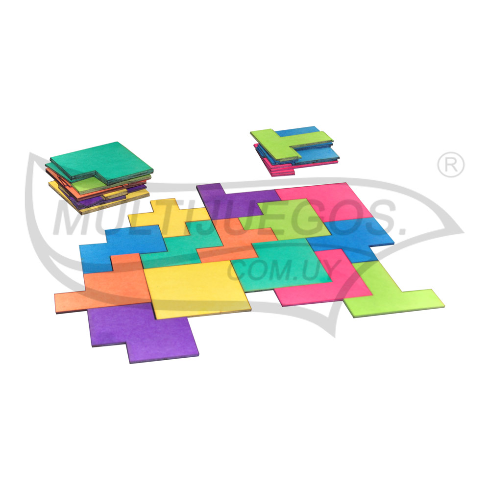 Este juguete está formado por piezas planas de colores fuertes y bien definidos como el fucsia, verde, violeta, amarillo, azul, entre otros. Las formas son variadas y los bordes rectos de todas las figuras encajan perfectamente con los bordes de todas. Así, los infantes tienen que ir encastrando pieza a pieza para formar aquello que imaginan o lo que la docente les proponga.