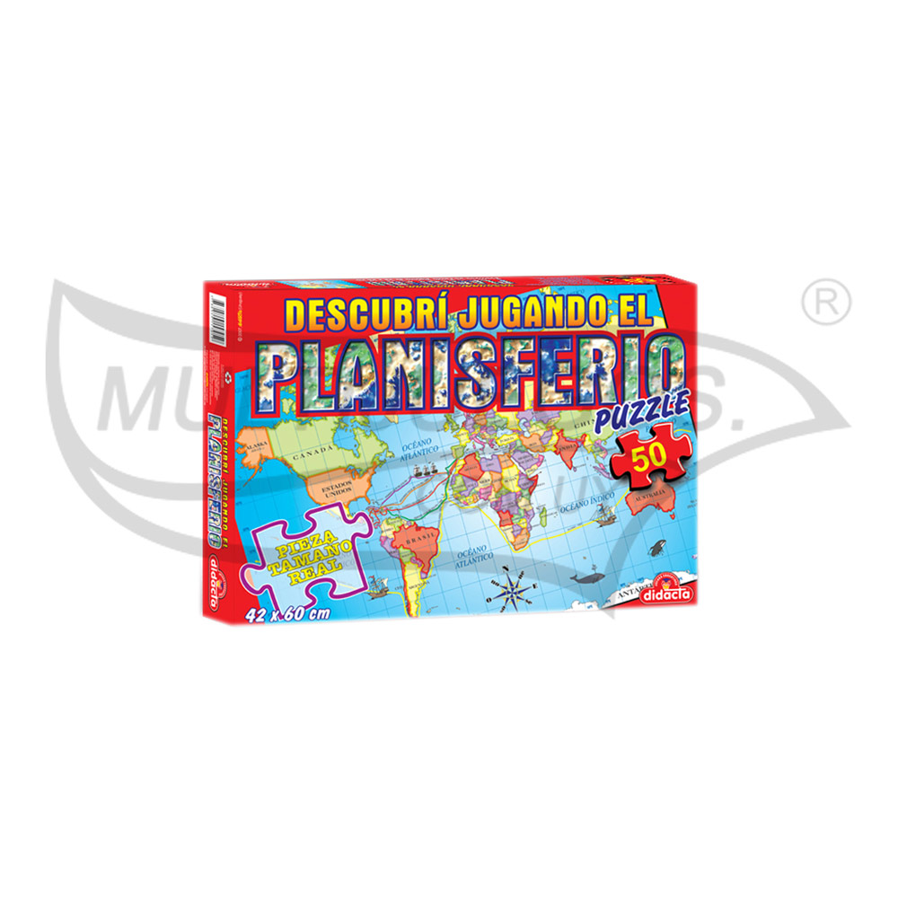 Cantidad de piezas: 50 / Medidas: 42 x 60 cm completo / Material: Cartón / Embalaje: Caja / Dimensión del embalaje: / Características: Piezas grandes que facilitan el armado y la visibilidad del mapa, en el que aparecen todos los continentes, los países, las rutas de los conquistadores, los océanos, los mares y más.