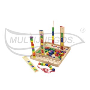 Es un juego que tiene una triple función. Primero, los chicos tienen que armarlo practicando con el encaje de piezas, luego enhebran y finalmente aprenden a atar los cordones.