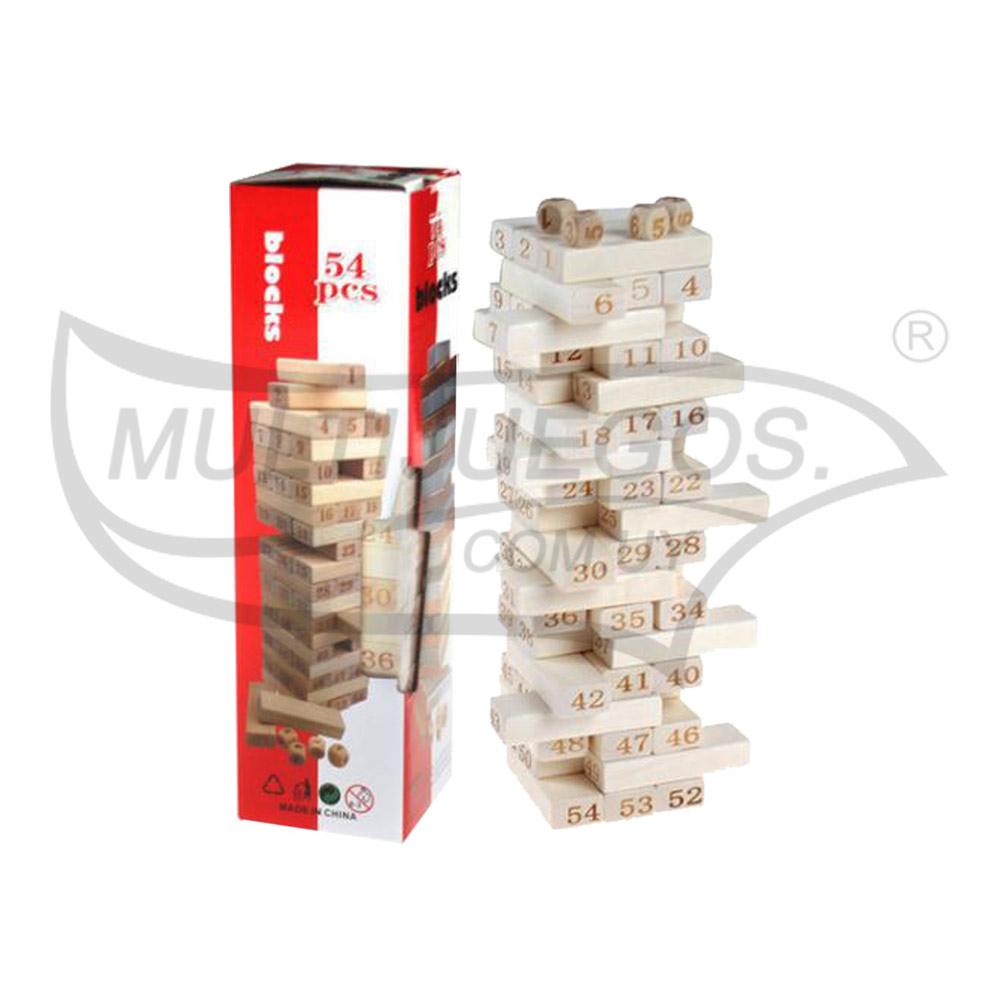 Cantidad de piezas: 54 / Medidas: 30 x 8 x 8 cm / Material: Madera / Embalaje: Caja / Dimensión del embalaje: 22 x 7 cm / Características: